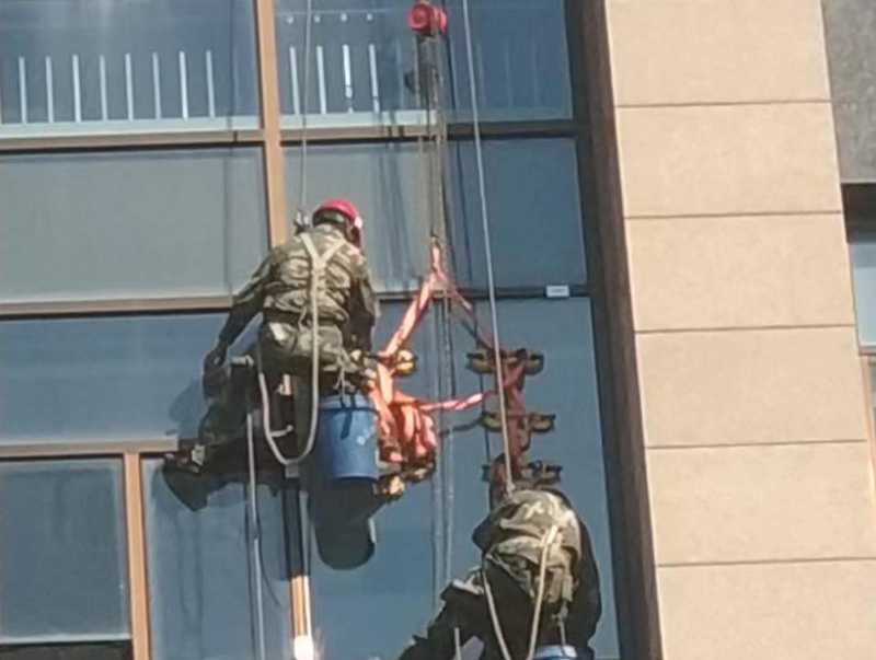 奉賢區(qū)檢測中心幕墻玻璃更換施工現(xiàn)場照。